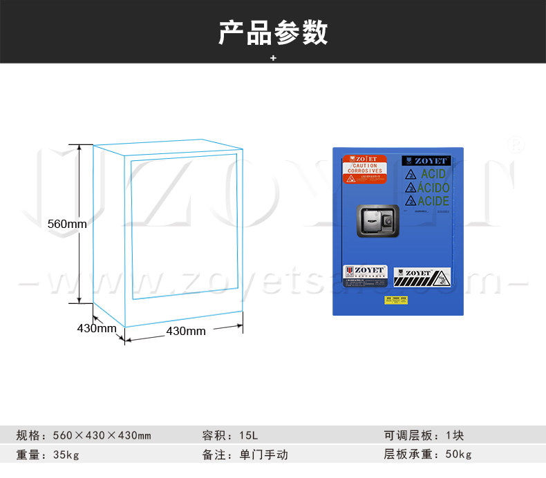 產(chǎn)品介紹:是指容積為4加侖/15升的一種用于存放弱腐蝕性液體的藍(lán)色安全柜。
