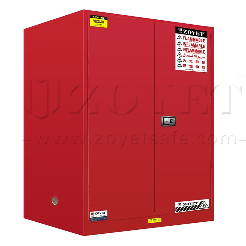 110加侖紅色可燃安全柜產(chǎn)品介紹:是指容積為110加侖/410升的一種用于存放可燃液體的紅色安全柜。