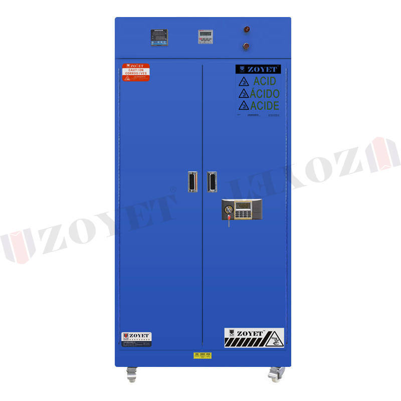 •  黃色柜存放易燃液體,藍(lán)色柜存放腐蝕性液體。