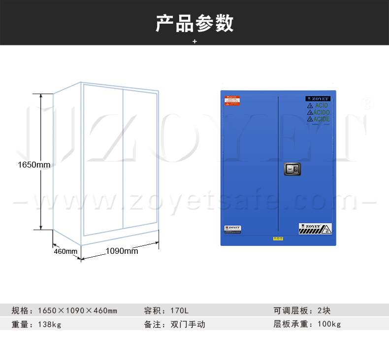 產(chǎn)品介紹:是指容積為45加侖/170升的一種用于存放弱腐蝕性液體的藍色防爆柜。