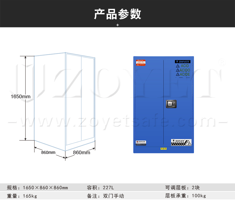 產(chǎn)品介紹:是指容積為60加侖/227升的一種用于存放弱腐蝕性液體的藍色防爆柜。