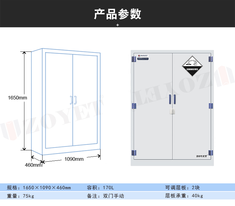 產(chǎn)品柜門:貼有醒目的腐蝕性警示標(biāo)識(shí),各種大小尺寸雙開門或單開門式樣均可訂做。