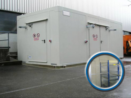 外柜體采用防銹鍍鋅鋼板,鋼焊接主體,尺寸基本均可以客戶根據(jù)需求自主定制,現(xiàn)使用較多的尺寸為高度2800MM,深度2300MM,寬度則各有不同,通常為6000MM以上。柜體操作方式為步入式,無層架,方便操作員進出。柜體具有泄壓設(shè)施或泄壓點,泄壓面積應(yīng)≥0.110 m2/m3,如采用標準國際海運集裝箱作為柜體,柜體框架需符合國際船級社檢測標準,具有《船級社證書》。