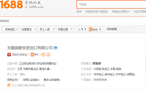 5:通過阿里巴巴搜索氣瓶柜也可以找到相關(guān)供應(yīng)商,
